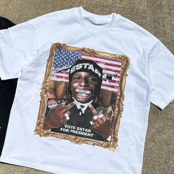 Aonga Harajuku Vintage Y2K Aesthetic Print T-shirt Loose Gothic Fashion Street Rock Round Neck Short Sleeve Couple Tops Woman and Man Womenswear Clothing