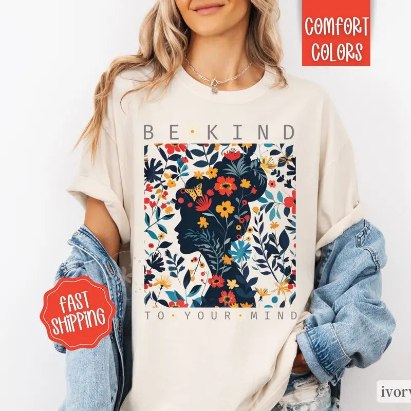 Be Kind To Your Mind Shirt Comfort Colors, Mental Health Tshirt, Boho Floral Shirt inspirational shirt