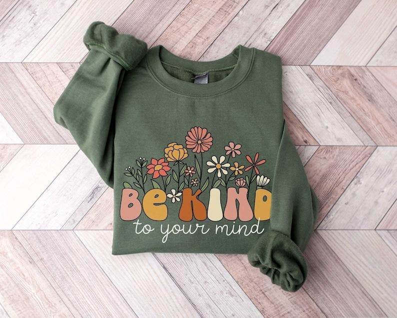Be Kind to Your Mind Sweatshirt Mental Health Sweatshirt Self Growth Crewneck Positive Sweatshirt Therapy Sweatshirt Mental Illness Hoodie and Sweater; T-shirt Cotton Menswear