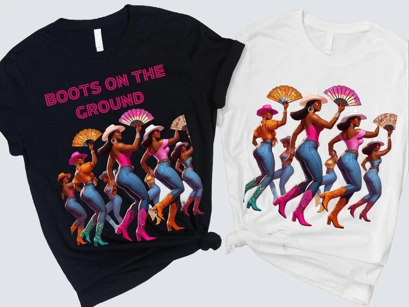 Boots On The Ground Line Dance T-Shirt, Western Black Girl Dancing Queens Shirt, Fun Country Music Outfit Fabric