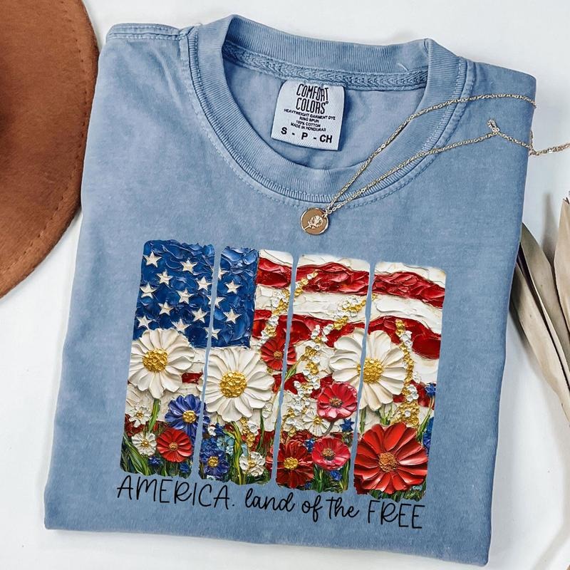 Comfort Colors Land of the Free Shirt, Floral America Brushstroke Shirt, 4th of July Shirt, Patriotic, Memorial Day, Unisex T-Shirt