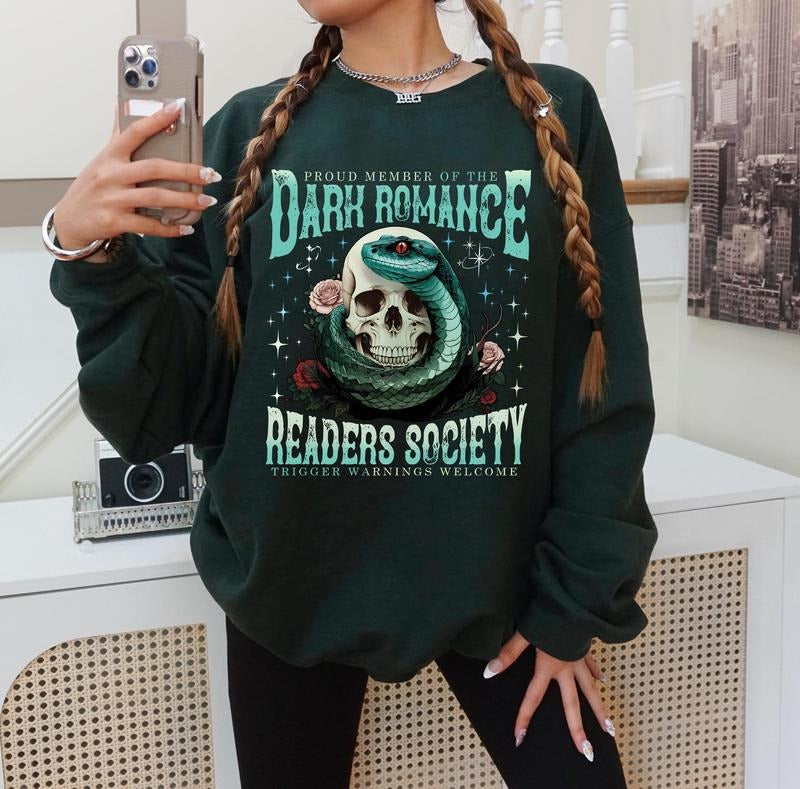 Dark Romance Readers Society Sweatshirt, Readers Society Hoodie, Fantasy Reader Shirt, Book Lover Gift Unisex Soft Comfort Crewneck Pullover Long Sleeves Graphic Fabric Sweater