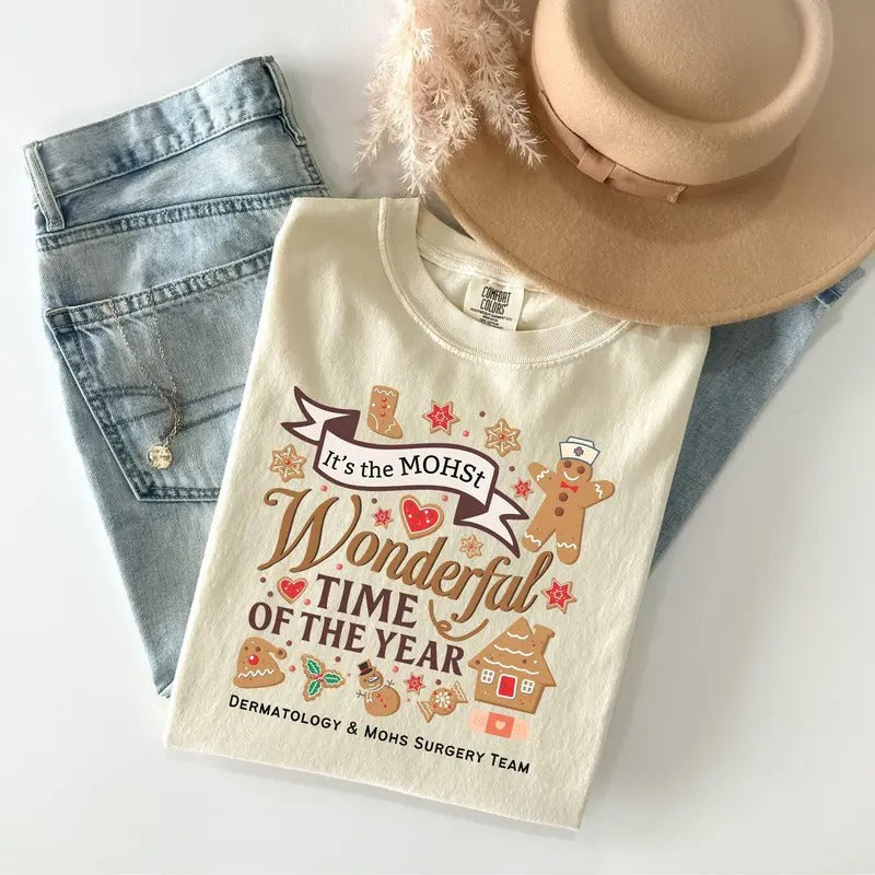 Dermatology and Mohs Surgery Team Holiday Comfort Colors T-shirt, Fun Medical Office Gift, Cute Gingerbread Shirt
