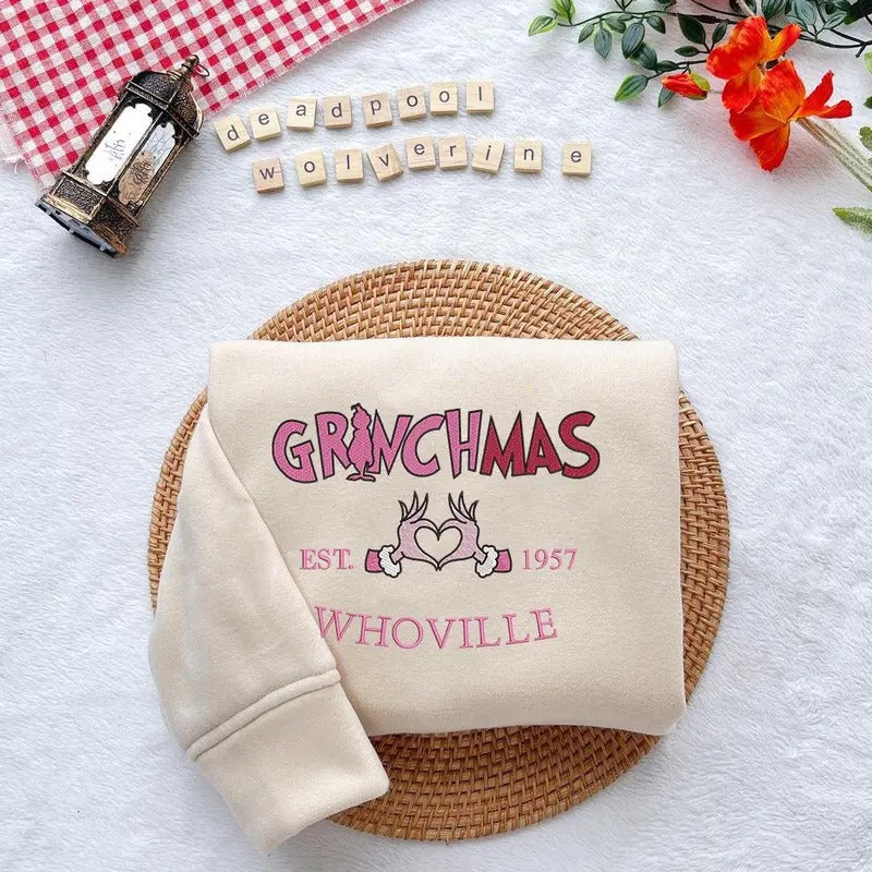 Embroidered Green Monster Sweatshirt, Christmas Green Monster Embroidered Shirt, Christmas Embroidered Sweatshirt, Green Monster Christmas