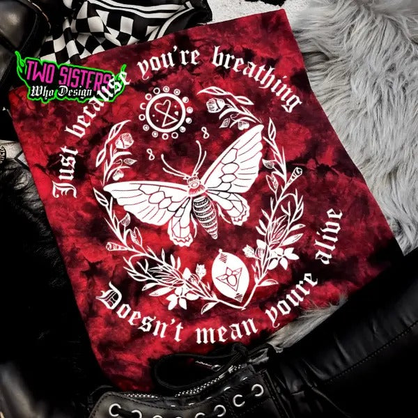 Just Because You Are Breathing, Doesn't Mean You Are Alive Red & Black Tie Dye T-shirt or Sweatshirt - Crewneck, Graphic, Casual Style Crewneck Top Vintage Aesthetic Garment Graphic Y2K Shortsleeve