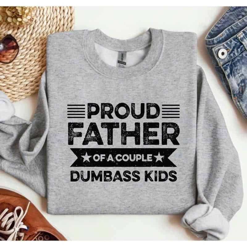 Proud Father Of A Couple Dumbass Kids Crewneck Sweatshirt/T-Shirt, For Men, For Women, Unisex Style, 100% Cotton, Pullover Crewneck Sweatshirt