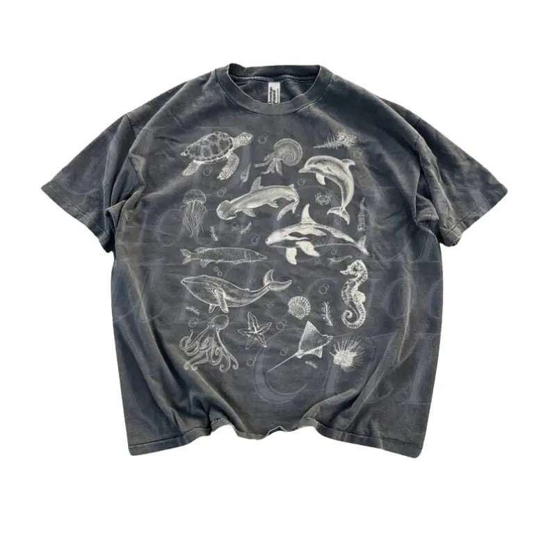 Sea Animal 90s Retro Vintage Graphic Tshirt, Ocean Nature Shirt, Sealife, Ocean, Whale, Orca, Turtle, Dolphin Shit, Unisex Adult Tee, Ocean Gifts Menswear Top