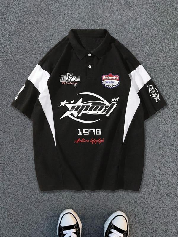 Unisex's Regular Fit Star & Striped Print Polo Shirt, Casual Short Sleeve Collared Top for Daily Wear, Fashion Men's Clothes for All Seasons