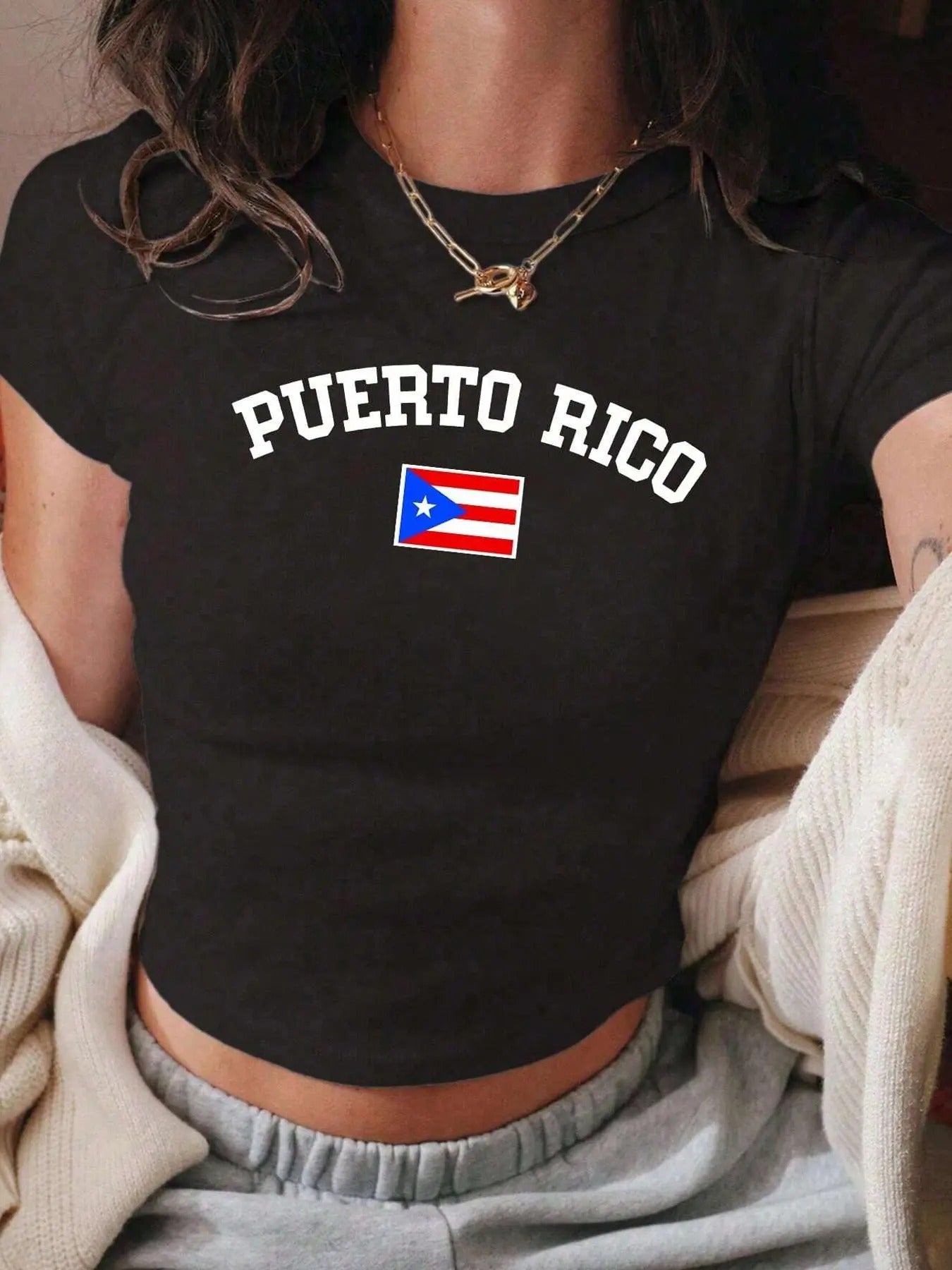 Women's Letter Print Round Neck Crop Tee, Casual Short Sleeve Crew Neck T-shirt for Summer, Fashion Women's Top for Daily Wearstyle{n002}3