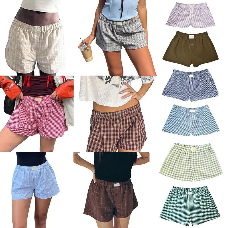 Y2k Plaid Shorts Baggy Boxer Shorts for Women Elastic Waist Casual Lounge Bottom Gingham Pajama Shorts Sleepwear