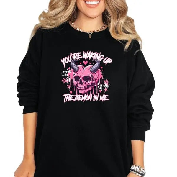 You Are Waking Up the Demon in Me' Crewneck Sweatshirt, T Shirt, or Hoodie Grunge Aesthetic Pullover | Casual, Comfort, Skulls, Retro, Streetwear